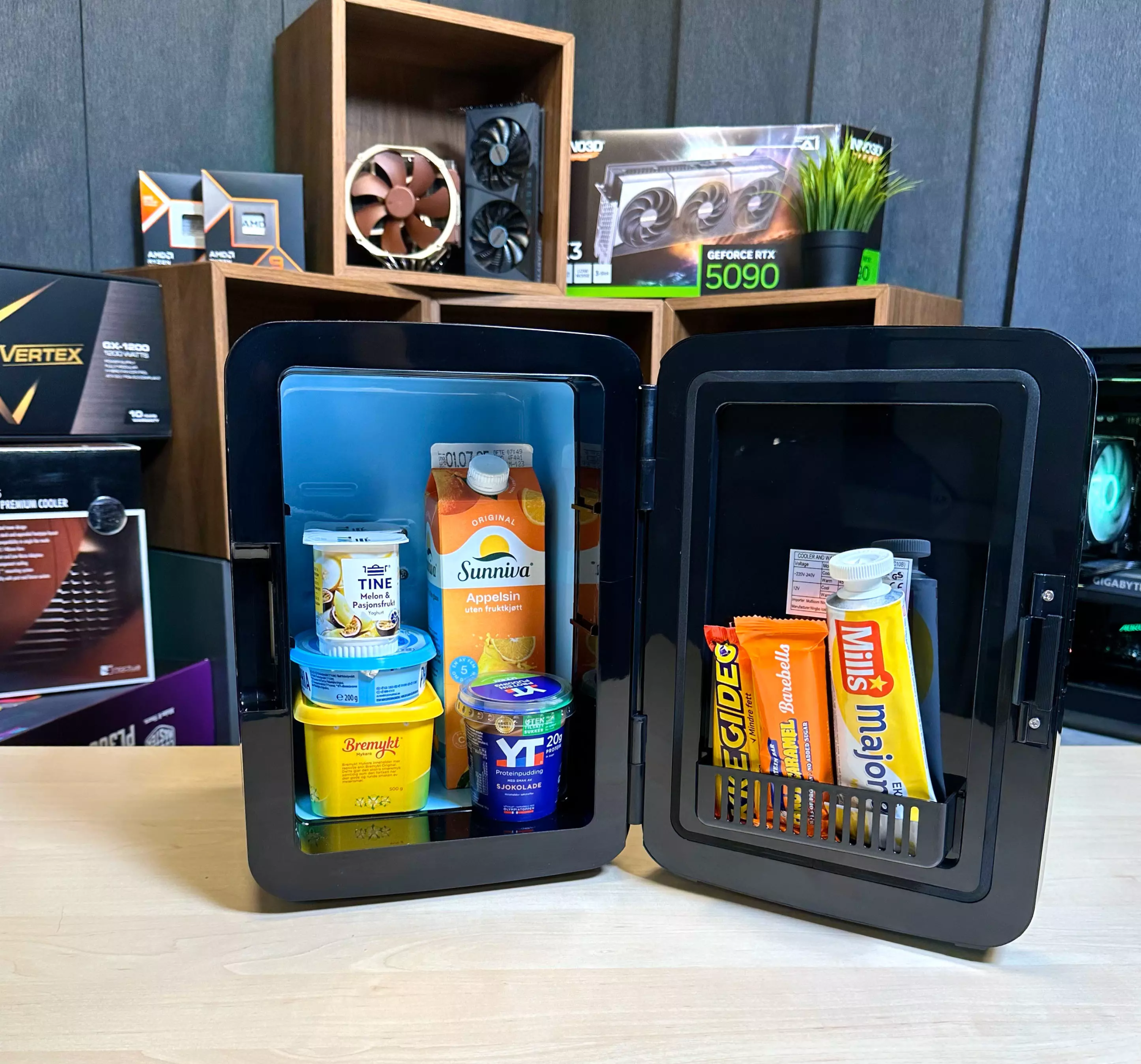 Minikjøleskapet er kompakt og har lekkert design med blank finish, som gjør at det passer perfekt på gamingrom, kontor, garasje eller i stue.